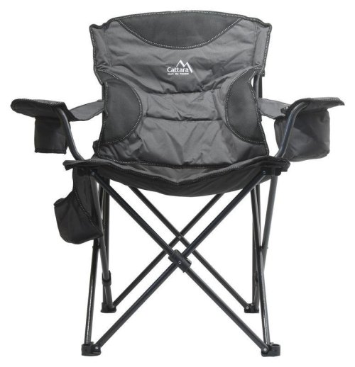 Odpočiňte si u vody, v přírodě, v kempu, na hudebním festivalu nebo jen poseďte chvíli na čerstvém vzduchu na zahradě. Skládací židle Cattara MERIT XXL vám poskytne dostatečné pohodlí. Uvelebíte se na kvalitně sešitý potah, ruce položíte na polstrované rukojeti a zády se opřete o opěradlo. Na jedné opěrce najdete dokonce držák na pití. Druhá je vybavená praktickou brašnou na drobné předměty.