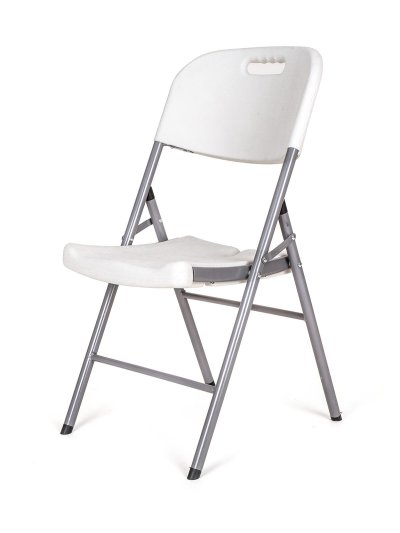 Skládací a velice stabilní židle o celkové velikosti 45 x 50 x 88 cm, po složení vytvoří úsporný balík o velikosti pouhých 27 x 47 x 114 cm. Složená židle je dokonale tvarována pro možnost stohování složených židlí na sebe, čímž ještě více šetří skladovací prostor. Židle je vyrobena z pevné ocelové konstrukce a vysokopevnostního HDPE panelu o síle 45 mm. Hladký povrch umožňuje velmi snadnou údržbu a čištění. Židle je vhodná na cesty, chatu, chalupu, jednoduše kamkoliv, kde po použití oceníte její úsporné skladování. Dodávána v šedobílém barevném provedení.