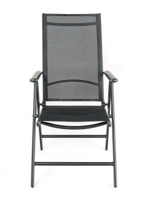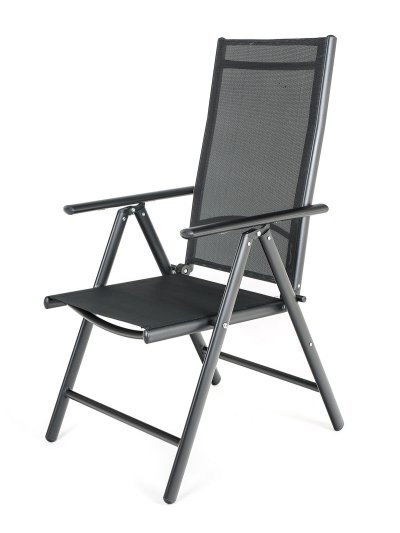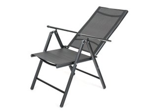 Lehká skládací a polohovací židle RAMADA má 7 poloh. S textilenem 2 x 1, ocelová konstrukce, područky, vzpěry.