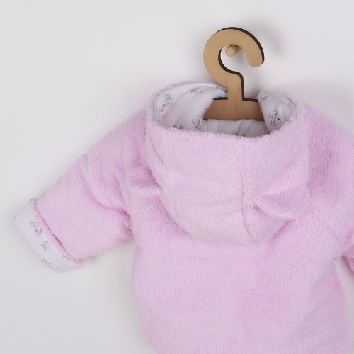 Zimní kojenecký kabátek s kapuckou New Baby Nice Bea. Zimní kabátek je vyroben ze dvou vrstev kvalitního materiálů - vrchního hrubšího, hřejivého fleecového materiálu a spodní bavlněné podšívky, která je celopotištěná medvídkami. Kabátek zdobí obrázek medvídka a má praktickou kapuci s roztomilými oušky. Zapínání na cvočky po celé délce. Složení: vrchní vrstva 80% bavlna, 20% polyester, podšívka: 100% bavlna, výplň: antialergické vlákno.