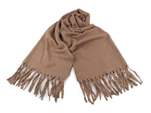 Zimní šála / pléd buklé s třásněmi 65x190 cm - béžová tmavá