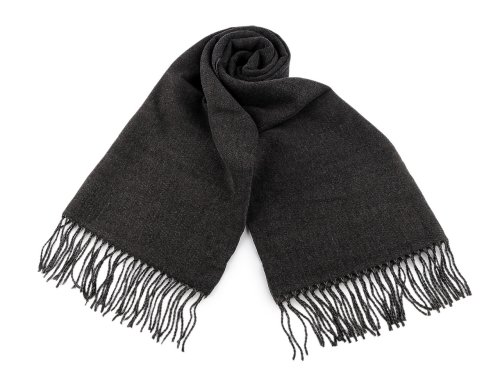 Zimní šála / pléd s třásněmi 70x180 cm - černá šedá tmavá