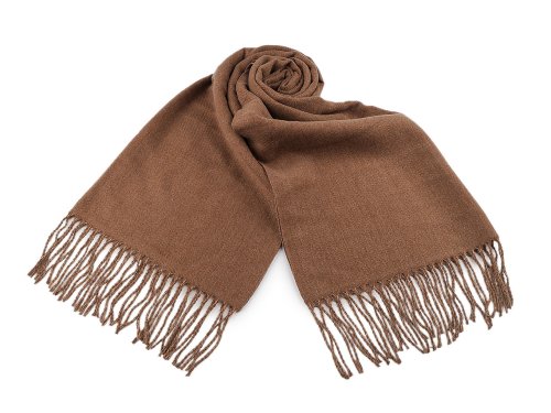 Zimní šála / pléd s třásněmi 70x180 cm - hnědá světlá béžová