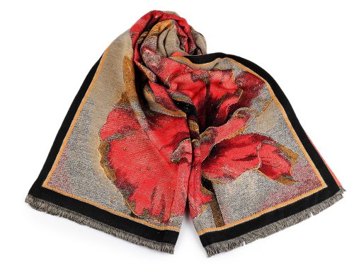 Velký luxusní šátek typu kašmír je ozdobený propracovanými motivy. Je vyrobený z hřejivého materiálu, který je příjemně hebký na dotek. Krásně vás zahřeje v chladném a sychravém počasí. Hodí se ke kabátu, bundě i svetru. Na koncích je zakončený třásněmi. Šátky typu kašmír jsou téměř dva metry dlouhé, skýtají široké možnosti při nošení. Můžete je nosit do práce i do společnosti, jejich elegantní vzhled váš outfit dokonale dozdobí. Některé šátky mají špatné štítky, skutečné složení je viskóza a polyester. Omlouváme se za toto nedopatření a děkujeme za pochopení.