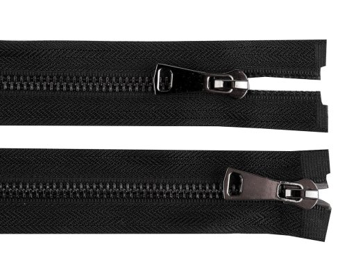 Kovový zip se 2 jezdci můžete rozepnout z obou stran. Využijete ho na bundy, vesty nebo kratší kabátky.