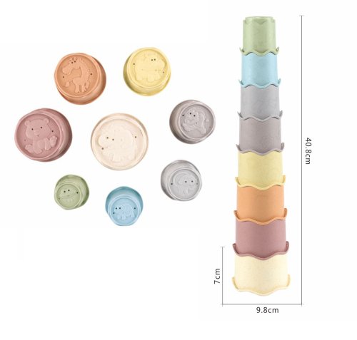 Stohovací kelímky 8 ksOblíbená věž vhodná pro hraní na písku, ve vaně nebo doma na podlaze. Kelímky může dítko stavět na sebe nebo vkládat do sebe.Starší děti se již mohou učit barvy.