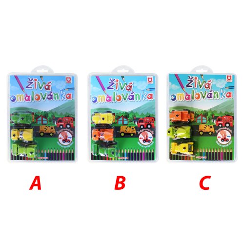 Unikátní hračka - popadni pastelky a hurá na to! Vybarvi si, co opravdu existuje! Skvělý set autíček s omalovánkami. Set obsahuje 3 mini autíčka na zpětný chod. Uvnitř balení najdeš super omalovánky s motivy stavebních aut, které můžeš vybarvit podle své vlastní fantazie.