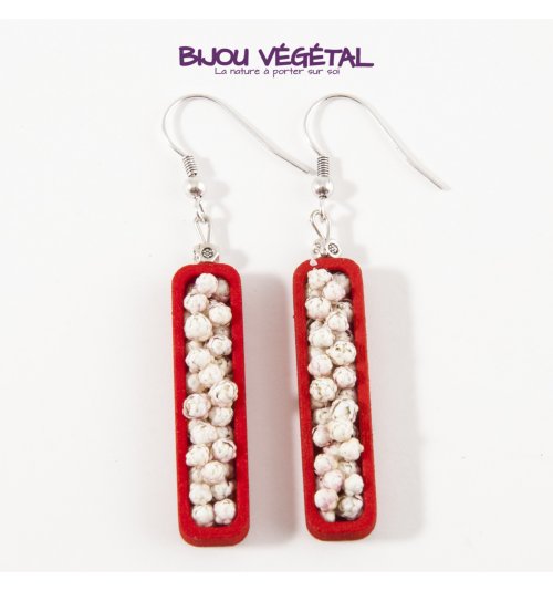 Živé šperky - Náušnice Jardiniere červené s trvalými bílými květy Nádherný módní doplněk ve výrazné barvě v kombinaci s trvalými bílými květy vytváří neobyčejný elegantní živý šperk. Živé šperky jsou stabilizovány patentovanou technologií a nepotřebují prakticky žádnou údržbu. Živé šperky sou baleny v krabičce, součástí balení je náhradní trvalá rostlina. Živé šperky jsou vyrobeny ručně ve Francii. Výrobce garantuje neomezenou životnost, při vhodném používání. Živé šperky nesmí být vystaveny velkým teplotním změnám a přímému proudu vody (při koupání, mytí nádobí apod.) Živé šperky byly poprvé představeny na mezinárodním veletrhu klenotů Bijorhca v Paříži roku 2015. Vytvořily je designové návrhářky a dlouholeté kamarádky Maryse a Manuella pro společnost Radis et Capucine. Živé šperky umožňují stálé propojení s přírodou a přinášejí ji doslova na dosah ruky. Francouzská značka Radis et Capucine