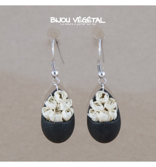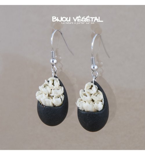 Živé šperky - Náušnice Slza černé s bílými minirůžičkami Nádherný módní doplněk ve výrazné černé barvě v kombinaci s bílými minirůžičkami vytváří neobyčejný elegantní živý šperk. Živé šperky jsou stabilizovány patentovanou technologií a nepotřebují prakticky žádnou údržbu. Živé šperky potřebují jednorázovou zálivku jednou týdně. Součástí balení je pipetka pro jednorázovou zálivku, ochranná krabička pro živé šperky. Živé šperky jsou vyrobeny ručně ve Francii. Výrobce garantuje neomezenou životnost, při vhodném používání. Živé šperky nesmí být vystaveny velkým teplotním změnám a přímému proudu vody (při koupání, mytí nádobí apod.) Živé šperky byly poprvé představeny na mezinárodním veletrhu klenotů Bijorhca v Paříži roku 2015. Vytvořily je designové návrhářky a dlouholeté kamarádky Maryse a Manuella pro společnost Radis et Capucine. Živé šperky umožňují stálé propojení s přírodou a přinášejí ji doslova na dosah ruky. Francouzská značka Radis et Capucine