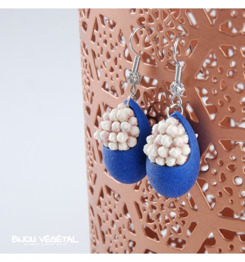 Živé šperky - Náušnice Slza modré s trvalými bílými květy Nádherný módní doplněk ve výrazné barvě v kombinaci s trvalými bílými květy vytváří neobyčejný elegantní živý šperk. Živé šperky jsou stabilizovány patentovanou technologií a nepotřebují prakticky žádnou údržbu. Živé šperky sou baleny v krabičce, součástí balení je náhradní trvalá rostlina. Živé šperky jsou vyrobeny ručně ve Francii. Výrobce garantuje neomezenou životnost, při vhodném používání. Živé šperky nesmí být vystaveny velkým teplotním změnám a přímému proudu vody (při koupání, mytí nádobí apod.) Živé šperky byly poprvé představeny na mezinárodním veletrhu klenotů Bijorhca v Paříži roku 2015. Vytvořily je designové návrhářky a dlouholeté kamarádky Maryse a Manuella pro společnost Radis et Capucine. Živé šperky umožňují stálé propojení s přírodou a přinášejí ji doslova na dosah ruky. Francouzská značka Radis et Capucine