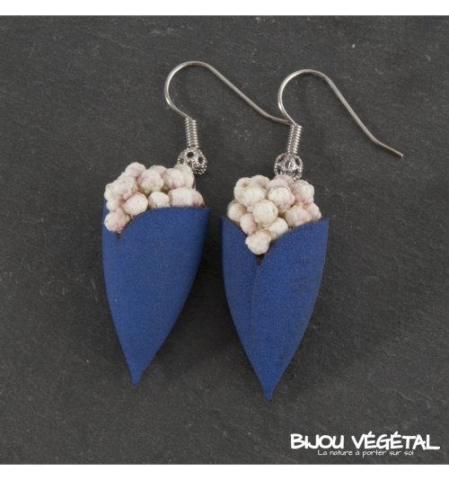 Živé šperky - Náušnice Tulipán modré s trvalými bílými kvšty Nádherný módní doplněk ve výrazné barvě v kombinaci s trvalými bílými květy vytváří neobyčejný elegantní živý šperk. Živé šperky jsou stabilizovány patentovanou technologií a nepotřebují prakticky žádnou údržbu. Živé šperky sou baleny v krabičce, součástí balení je náhradní trvalá rostlina. Živé šperky jsou vyrobeny ručně ve Francii. Výrobce garantuje neomezenou životnost, při vhodném používání. Živé šperky nesmí být vystaveny velkým teplotním změnám a přímému proudu vody (při koupání, mytí nádobí apod.) Živé šperky byly poprvé představeny na mezinárodním veletrhu klenotů Bijorhca v Paříži roku 2015. Vytvořily je designové návrhářky a dlouholeté kamarádky Maryse a Manuella pro společnost Radis et Capucine. Živé šperky umožňují stálé propojení s přírodou a přinášejí ji doslova na dosah ruky. Francouzská značka Radis et Capucine