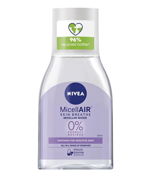 Zklidňující pečující micelární voda důkladně odstraňuje make-up a čistí pleť.