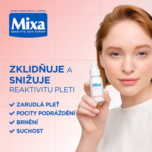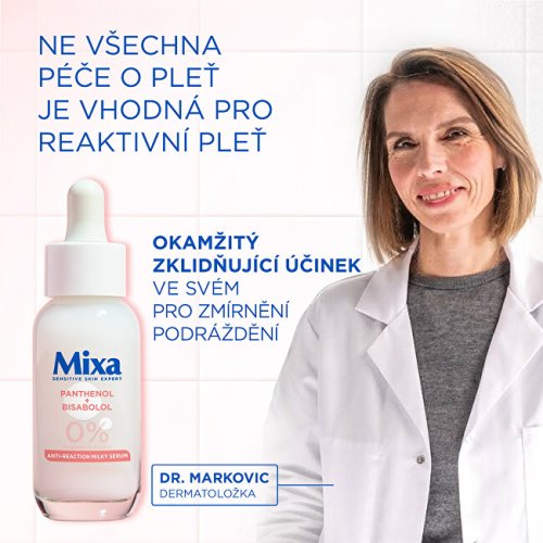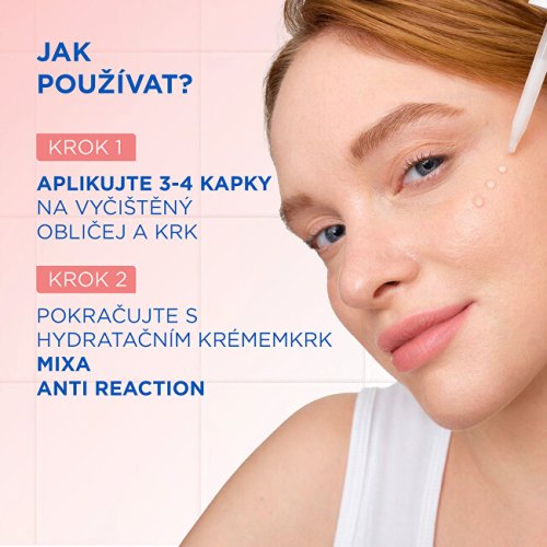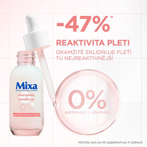 Pleťové sérum Mixa Anti-Reaction s panthenolem a bisabololem bylo vyvinuto speciálně pro potřeby citlivé a reaktivní pleti. Jeho šetrné složení pomáhá okamžitě zklidnit podráždění a postupně snižuje citlivost pokožky. Při pravidelném používání zlepšuje celkový komfort pleti a podporuje její rovnováhu. Lehká textura se rychle vstřebává a nezanechává mastný pocit.