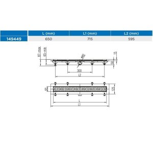 Žlab podlahový lineární 650 mm, D 40 mm, boční, square mat, ENPRO