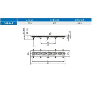 Žlab podlahový lineární 750 mm, D 40 mm, boční, klasik / floor mat, ENPRO