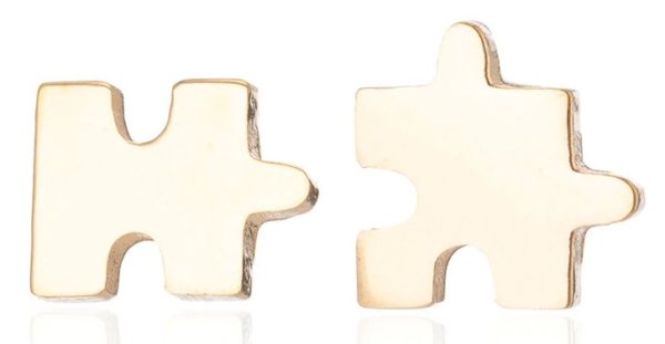 Originální puzzle náušnice z chirurgické oceli. Designové puzzle náušnice jsou vyrobeny z chirurgické oceli s jakostním označením 316L. Přibližná velikost jedné náušnice: 0,8 x 0,5 cm Typ uzávěru: puzeta Povrchová úprava: žluté zlato Materiál: chirurgická ocel