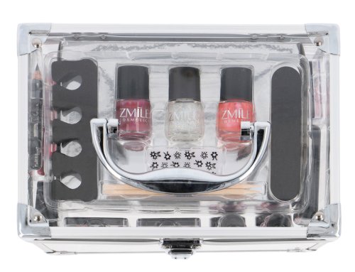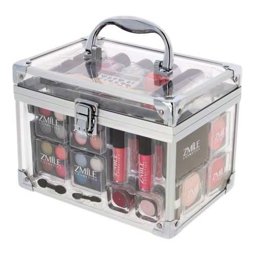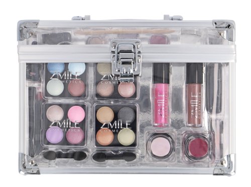 Kosmetický kufřík plastový průhledný Acrylic – celkem 42 ks příslušenství. Obsahuje 16× očními stíny ,2× tvářenku, 1× pudr, 3× rtěnku, 1× tužku na oči, 2× lesk na rty, 2× krémový lesk na rty, 3× lak na nehty,1× separátor na nehty, aršíl s nálepkami na nehty, 2× polník na nehty, 2× aplikátor,1× ořezávátko, 1× štětec na tvářenku, 1× kapesní zrcátko a 1×1× vyjmutelný box se zrcátkem se stíny a tvářenkou. Dermatologicky testováno, vyhovuje přísným normám EU.