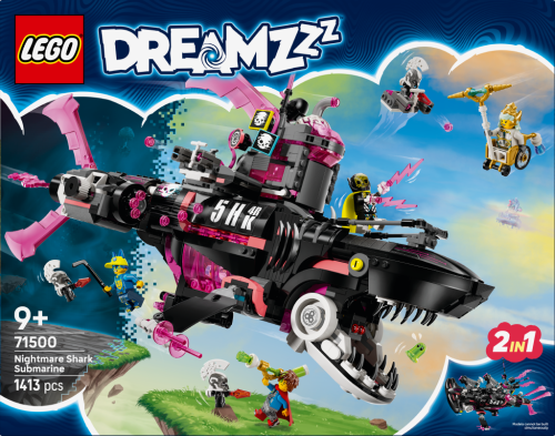 Děti se ponoří do Světa snů se stavebnicí LEGO® DREAMZzz™ (71500) Žraločkoponorka z nočních můr pro kluky a holky od 9 let. Tato fantastická stavebnice plná parádních detailů umožňuje fanouškům vychutnat si velkolepá dobrodružství pod mořskou hladinou po boku Matea, Logana a Astrid. Malí snílci si postaví model žraloka a pak ho promění na žraločkoponorku nebo bitevní loď se žraloky kladivouny. Mezi detaily stavebnice patří odnímatelná miniaturní letadla, vystřelovače, rakety, které lze vystřelit ze žraločí tlamy, otevírací kokpit a vězení uvnitř žraloka. Součástí jsou také modulární vystřelovače kompatibilní s dalšími stavebnicemi z řady LEGO DREAMZzz 2025 (prodávají se samostatně). Minifigurky Matea, Logana, Astrid, Rozbíječe snů, snílků a figurky Z-Fleka a 3 Kybervěcí vdechnou stavebnici život a podnítí kreativní hraní. Součástí napínavé stavebnice je návod na stavění vedený příběhem, se kterým se děti ponoří do dobrodružství ve Světě snů a stanou se hrdiny.