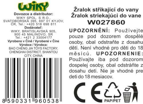 Žralok stříkající do vany. Rozměry 18,5x7x10,5 cm.
