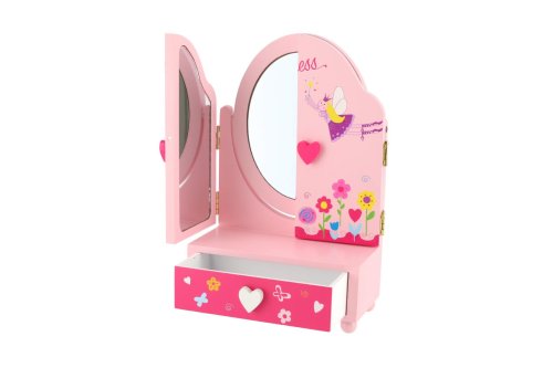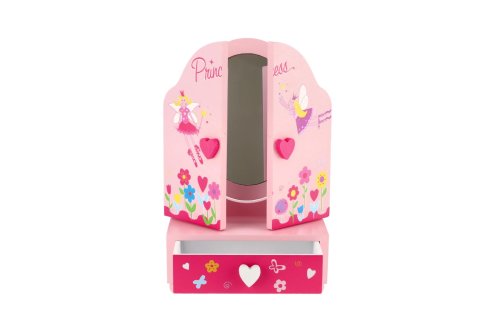 Každá malá parádnice chce mít svou vlastní šperkovnici, kam by mohla schovat všechny své cennosti včetně prstýnků, náramků, korálků a jiných pokladů. Rozměr otevřeného zrcadla je cca 33 cm. Šperkovnice je vyrobena z kvalitního dřeva a v krásné holčičí růžové barvě. Rozměry balení 18 x 26 x 10 cm. Vhodné pro děti od 3 let.