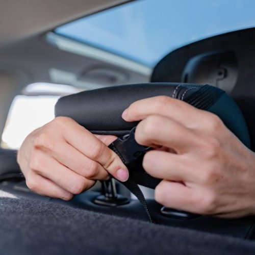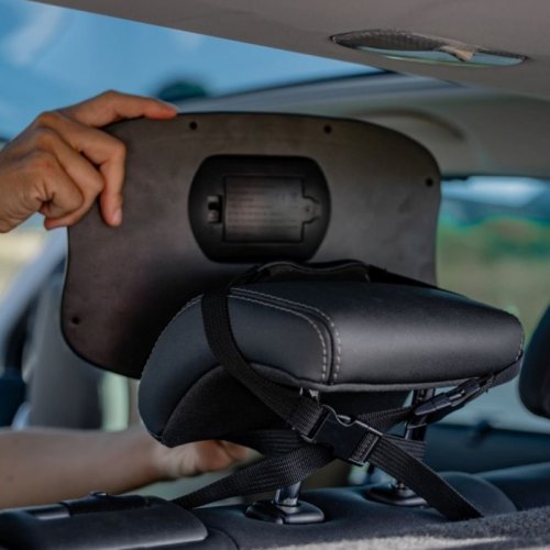 • snadno se instaluje pomocí popruhů se sponou na opěrku hlavy zadního autosedadla