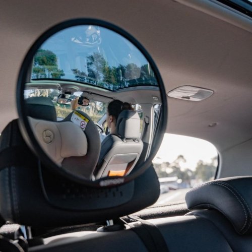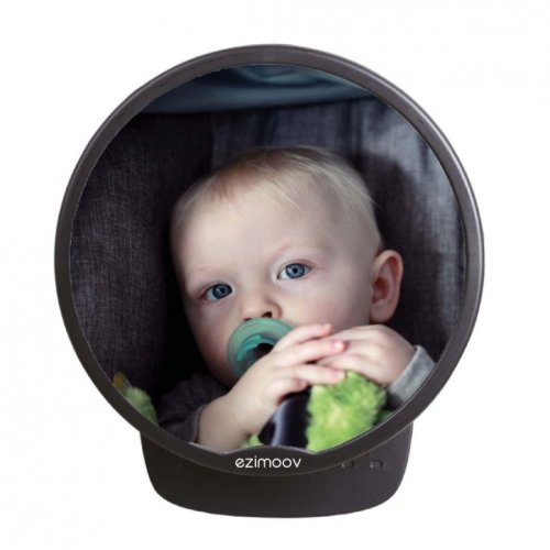 Velké, mírně zaoblené kulaté zrcátko, které se upevňuje na opěrku hlavy zadního autosedadla.