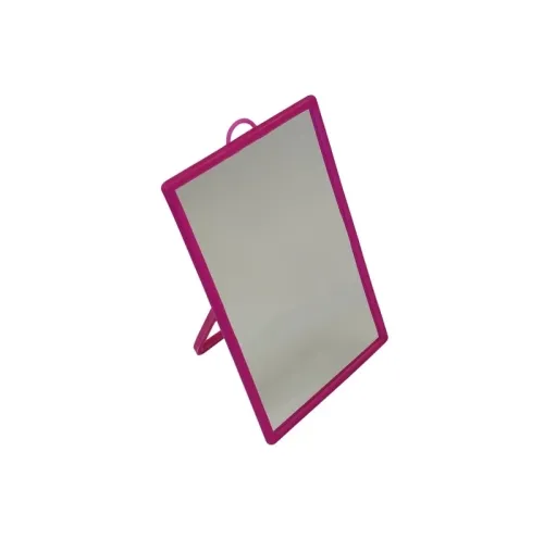 Zrcadlo obdélníkového tvaru, rozměry 8 x 12 cm, úzký plastový rám v různých barvách, zrcátko k postavení nebo zavěšení.