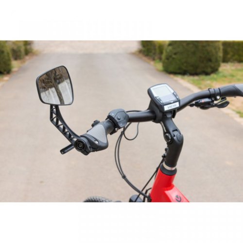 zrcátko na řídítkách s extra velkou plochou - 56 cm2. Pro použití ve městě nebo pro volný čas. Příhradový nosník tlumí vibrace