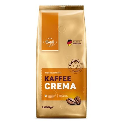 Pražená zrnková káva Seli - Crema, vybrané kávové odrůdy a švýcarský způsob pražení kávě dodají plnou chuť a hedvábnou vrstvu nadýchané zlatavé pěny Robusta 90%, Arabica 10% Hmotnost: 1 000 g