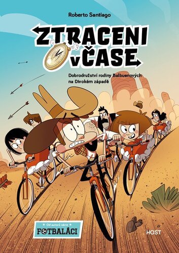 Nová série napínavých akčních příběhů od autorů bestsellerových Fotbaláků Všechno to začalo, jak už to tak bývá, jednoho úplně obyčejného dne. Zašli jsme si do obchoďáku v naší čtvrti koupit nová kola. Můj táta, brácha, ségra, naše sousedka Mari Carmen se svou dcerou Máriou a já. Koupili jsme šest nádherných, červených, nablýskaných kol. Paráda, co? A zrovna když jsme se na parkovišti chystali šlápnout do pedálů, tak se to stalo: zahřmělo a z nebe udeřil blesk. Pak nás oslepila bílá záře a… my jsme se ocitli v městečku Black Rock. V samém srdci Divokého západu. Zdá se vám to ulítlé? Mně taky, ale zažil jsem to. A tohle je jenom začátek! Dobrodružství rodiny Balbuenových na Divokém západě je první díl nové série Roberta Santiaga, autora oblíbených Fotbaláků. Seznámíte se v něm s bláznivou rodinkou, která se shodou nevyzpytatelných okolností zacyklí v čase a prostoru. A tak putuje jednou historickou epochou za druhou.
