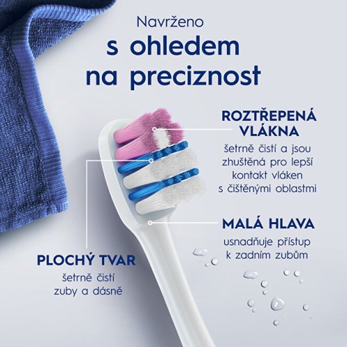 Zažijte opravdu šetrné čištění s manuálním zubním kartáčkem Pro-Sensitive Advanced s extra měkkými vlákny, která odstraňují bakterie způsobující plak dokonce i podél linie dásní. Tento kartáček využívá vlákna s roztřepenými konečky pro jemnější čištění, jeho hlava má plochý tvar pro šetrné čištění a její malé rozměry umožňují snadný přístup do všech oblastí.