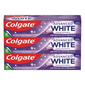 Rozjasněte svůj úsměv se zubní pastou Colgate Advanced White Purple, která obsahuje gel s fialovými pigmenty a klinicky ověřený bělicí systém. Odstraňuje povrchové skvrny a zabraňuje jejich novému vzniku v budoucnosti. Díky této fialové zubní pastě získáte bělejší zuby již za 10 dní. Také osvěžuje dech, bojuje proti zubnímu kazu a je bezpečná pro zubní sklovinu při každodenním použití.