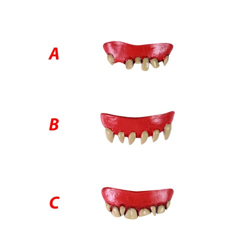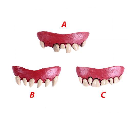 Hrozivé gumové zuby, které jsou perfektním doplňkem ke kostýmu na každý karnevalový večírek či Halloween párty! Vyber si ze 3 druhů.