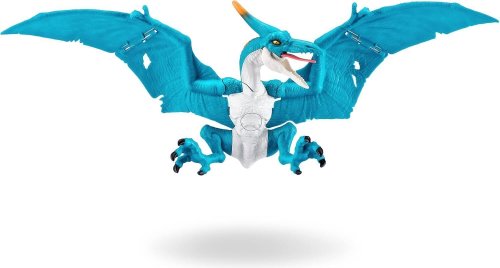 realistický vzhled a řev, křídla lze po rozevření zvětšit na dvojnásobek délky, hýbací čelist, pro provoz jsou třeba baterie 3x AG13 (jsou součástí balení).