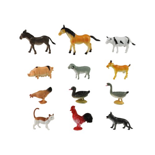 V balení najdeš 12 ks různých domácích zvířátek, jako je kohout, kočka, kráva, husa a jiné.