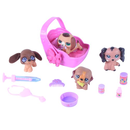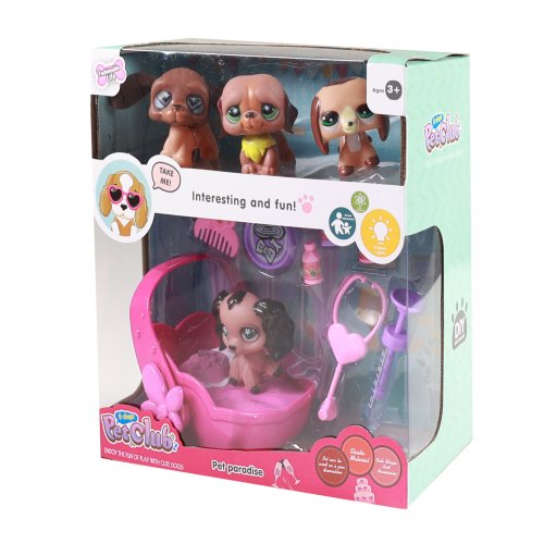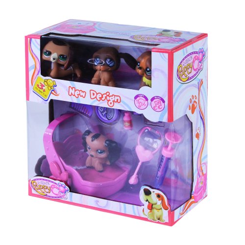 V sadě najdete čtyři roztomilá zvířátka. Zvířátka jsou cca 5 cm vysoká. Balení obsahuje přenosku, která je na dvě AA baterie. Přenoska pro zvířátka hraje a bliká červeným a modrým světlem. Může sloužit i jako pelíšek. V balení rovněž naleznete hřebínek, misku na žrádlo a potřeby pro veterináře, např. injekci, léky a stetoskop. Baterie nejsou součástí balení.