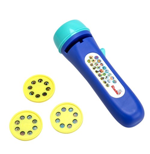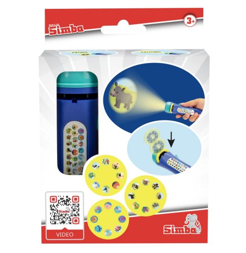 Světelný LED projektor obsahuje 3 diapozitivy po 8 motivech zvířátek k promítání např. na zeď. Velikost projektoru 12 cm.