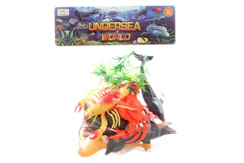 Balení mořských zvířátek. V balení želva, rak, krab, žralok, mrož a delfín. Baleno v sáčku. Rozměry balení cca 21x25x4 cm. Velikost zvířátka cca 12 cm. Věk 3+