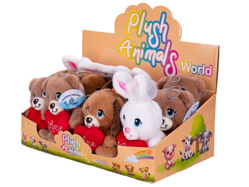 Zvířátko plyšové 15 cm sedící se srdíčkem - mix variant či barev