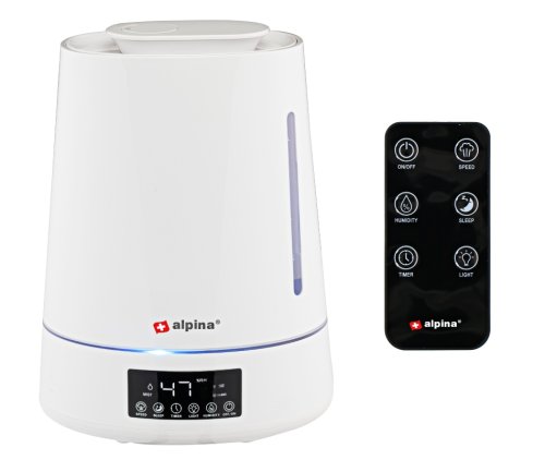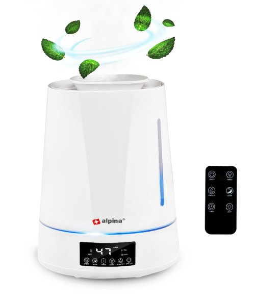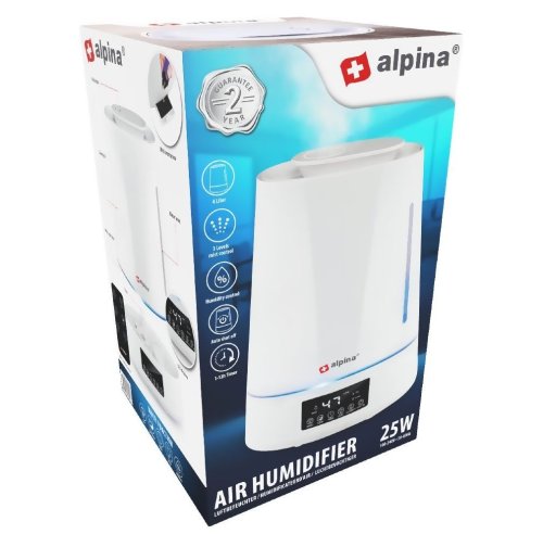 Zvlhčovač vzduchu – tento zvlhčovač vzduchu vytváří mlhu, aby zvlhčoval vzduch ve vašem domě. To pomáhá při suché pokožce, popraskaných rtech a ucpaném nosu.Difuzní vlhkost – se zvlhčovačem vzduchu alpina určujete vlhkost vzduchu ve vaší domácnosti. Zvlhčovač je nastavitelný v 5 stupních od 45 % do 90 %.Aeroma difuzor s mlhou – tento zvlhčovač vzduchu má tři nastavení mlhy. Vyberte si nízký, střední nebo vysoký stupeň rozprašování. Pro zážitek z vůně přidejte kapky aromatického oleje.Časovač a automatické vypnutí – difuzér se automaticky vypne, pokud obsahuje příliš málo vody nebo když je dosažena požadovaná vlhkost vzduchu. Můžete také nastavit časovač. Dálkové ovládání a LED displej – zvlhčovač vzduchu můžete ovládat pomocí LED displeje nebo pomocí dálkového ovládání, které je součástí dodávky, z vašeho křesla nebo postele.Specifikace zvlhčovače vzduchu Alpina Napětí: 100 V - 240 V Frekvence: 50 ~ 60 Hz Příkon: 25 W Obsah: 4 litry Dosah: 15 až 30 metrů čtverečních Tři režimy stříkání: nízký, střední, vysoký spínací hodiny: 1-12 hodin kontrola vlhkosti 45 %-90 s filtrem a aroma boxem, automatické vypnutí při nedostatku vody, noční světlo