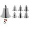 Vánoční zvonek vyrobený ze slitiny kovů, v mixu designů - hladký nebo jedním či více ozdobnými proužky. Rozměry: spodní průměr 3,5 cm, výška 11 cm. Barva: stříbrná.