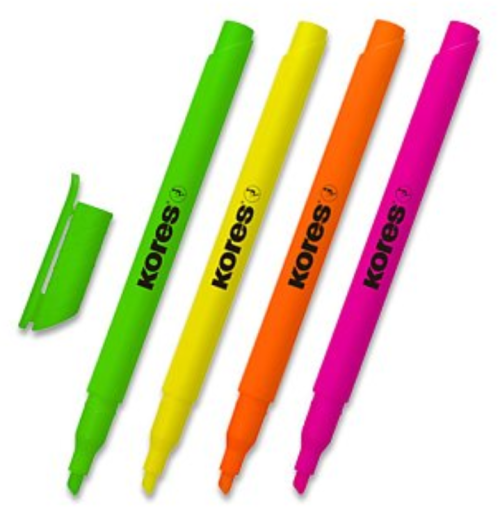 univerzální inkoust na vodní bázi, * pro všechny typy papíru, * nevysychá ani při dlouhé době otevření, * seříznutý hrot s šíři 0,5 - 3,5 mm, [zvýrazňovač 0,5-3,5 mm], Vyrobeno v ČR, [český výrobek], [kores] [kores] [kores] [kores]