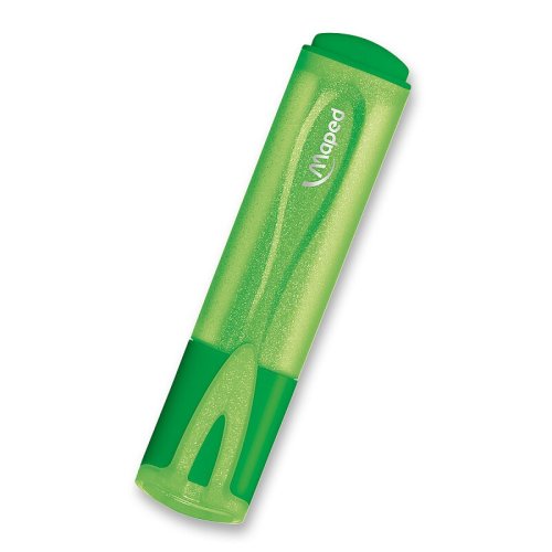 Plochý zvýrazňovač Maped Glitter Fluo ve čtyřech barvách se třpytivými efekty.