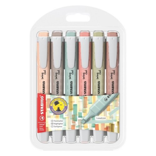 Kromě neonových a pastelových barev je zvýrazňovač STABILO swing cool dostupný také v jemných a tlumených barvách inspirovaných přírodou. STABILO swing cool NatureCOLORS nabízí estetické akcenty a dodává textům jemnou strukturu - v barvách jako siena, bahenní zelená a zemitá zelená. Díky zkosenému hrotu jsou dvě šířky stop - 1mm a 4mm - takže zvýrazňovač lze použít jak pro zvýraznění, tak pro podtržení.