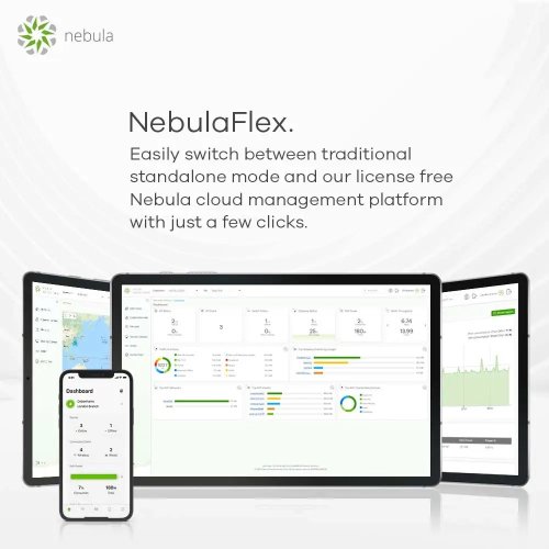 Model NWA55AXE je kompatibilní s řešením NebulaFlex, takže můžete libovolně přepínat mezi jeho lokální správou prostřednictvím grafického uživatelského rozhraní a extrémně snadnou správou pomocí , se kterou si nemusíte pamatovat IP adresu, uživatelské jméno ani heslo.